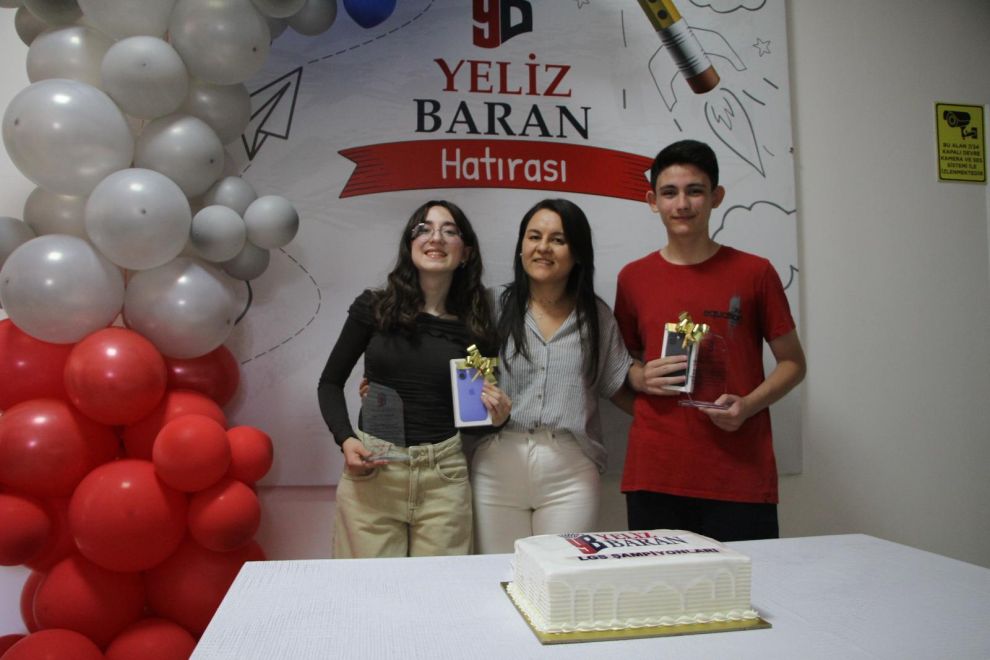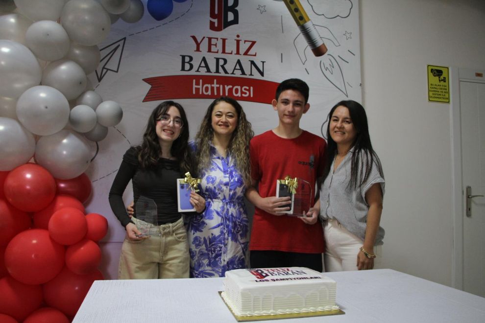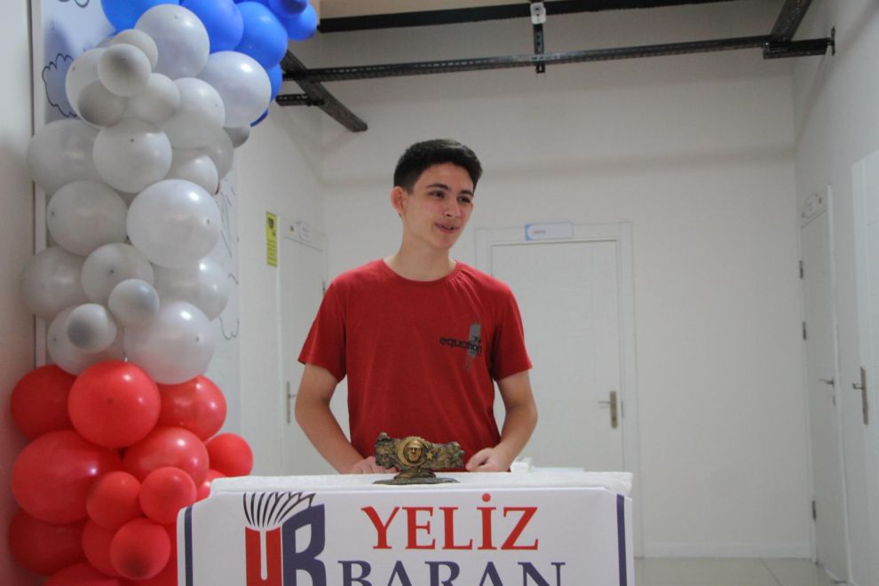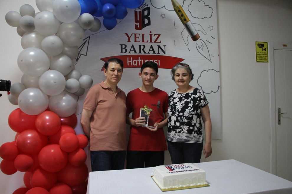 Bolu’da ilk kez bir eğitim kurumundan 2 şampiyon çıkartmanın haklı gururunu yaşayan Yeliz Baran Eğitim kurumu şampiyonlarına hediye taktim etti. Hediye taktimi sırasında konuşan Yeliz Baran Eğitim kurumu yönetim kurulu başkanı Yeliz Baran “ Bizim için bu yıl özellikle çok heyecanlı geçti. Elde edilen bu başarıyı hep birlikte aileler olarak ekip olarak hepimiz çok fazla hak ettik diye düşünüyorum. Çocuklarımızı çok tebrik ediyorum. Gelecek hayatlarında başarılar diliyorum. Ailelerimiz onlar ile birlikte çok fazla gelip gittiler. Valizler çok geldi gitti. Zorlu şartlar altında çalıştık fakat bu başarıyı çok fazla hak ettik. Biz Yeliz Baran Ailesi olarak hem ailelerimiz ile hem de öğrencilerimizi tebrik ediyorum. İnşallah hayatları her zaman başarılar ile dolu olsun” dedi.