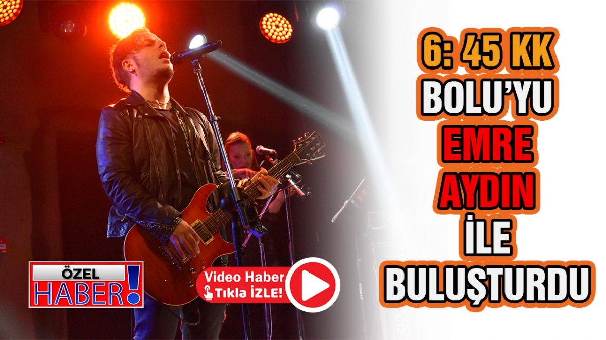 Uzun zaman sonra Bolu'ya gelen Emre Aydın sevilen şarkılarını 6: 45 KK Bolu’da seslendirdi. Bolu halkının büyük ilgi gösterdiği konserde başarılı Rock yıldızı Emre Aydın uzun yıllar sonra Bolu'da konser vermekten çok mutlu olduğunu belirtti. Gecede sevilen parçalarını 6:45 sahnede seslendiren Aydın'a hayranları da eşlik etti.