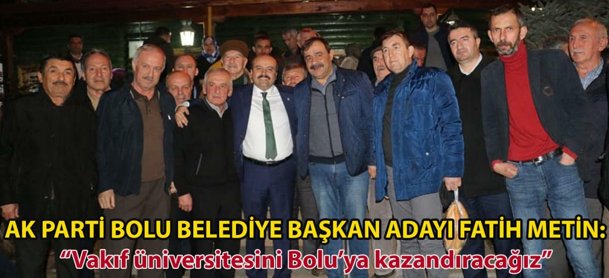 Metin, seçim vaatleri arasında yer alan ikinci üniversite konusuna ilişkin de “Gençlerimiz burada. Gençler, önümüzdeki dönemde inşallah Vakıf Üniversitesi kuracağız. Türkiye’de tek olacak. İzzet Baysal Vakfımız da bu işin lokomotifi olacak. Bütün derneklerimizin, vakıflarımızın, Bolu Belediyemizin de içinde bulunduğu bir Vakıf Üniversitesi’ni Bolu’ya kazandıracağız. Bu üniversitenin özelliği ‘yazılım üniversitesi’ olacak. Abant izzet Baysal Üniversitemiz büyüyor, gelişiyor. Onu büyütmeye, geliştirmeye devam edeceğiz. Dünya artık dijital çağı yaşıyor. Teknolojiyi takip etmemiz lazım. O nedenle bu üniversiteyi Allah’ın izniyle Bolu’ya kazandıracağız” açıklamasında bulundu.