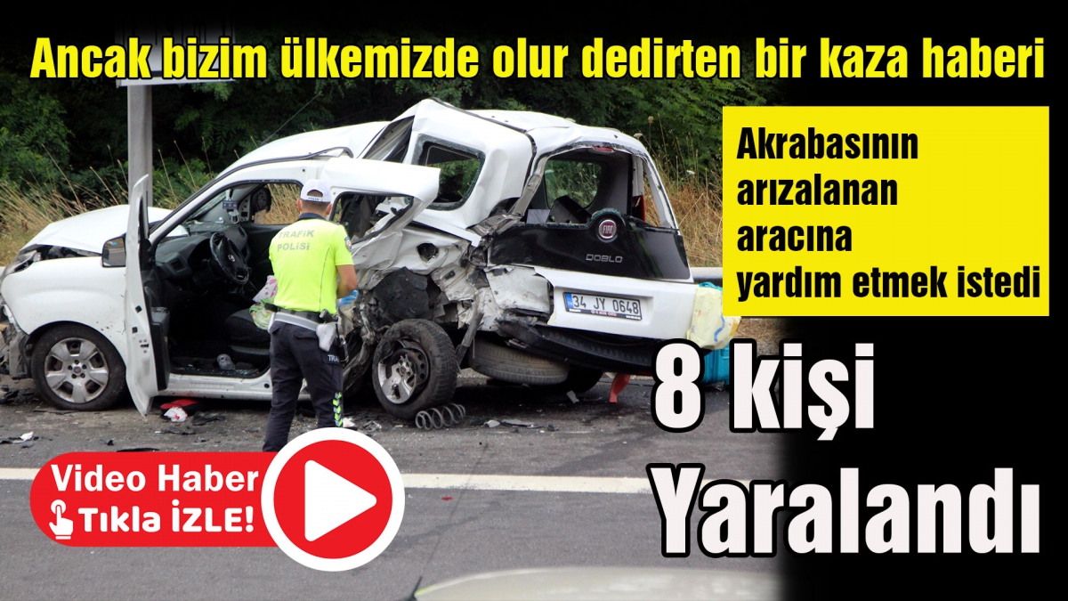 Kaza, saat 07.00 sıralarında TEM Otoyolu'nun Abant Gişeleri mevkiinde meydana geldi. Ankara yönüne giden Mikail Oğuz yönetimindeki 80 AAL 032 plakalı hafif ticari araç, Abant Gişeleri mevkiinde, arıza yaptığı için yol kenarında park halinde bulunan Muhammed Hamdi Demir yönetimindeki 34 JY 0648 plakalı hafif ticari araç ile arıza yapan araca yardım için duran akrabaları Necati Turgay Şener idaresindeki 34 BVN 108 plakalı hafif ticari araca çarptı. Kazada, 3 aracın sürücüleri ile birlikte yanlarında bulunan Aysun Oğuz, Nuriye Oğuz, Saaddetin Oğuz ile Emine Şener ve Kerem Şener yaralandı. Yaralılar, olay yerine gelen sağlık ekiplerinin ilk müdahalelerinin ardından ambulanslarla kentteki hastanelere kaldırılarak tedavi altına alındı. Yaralıların hayati tehlikesinin bulunmadığı öğrenildi.