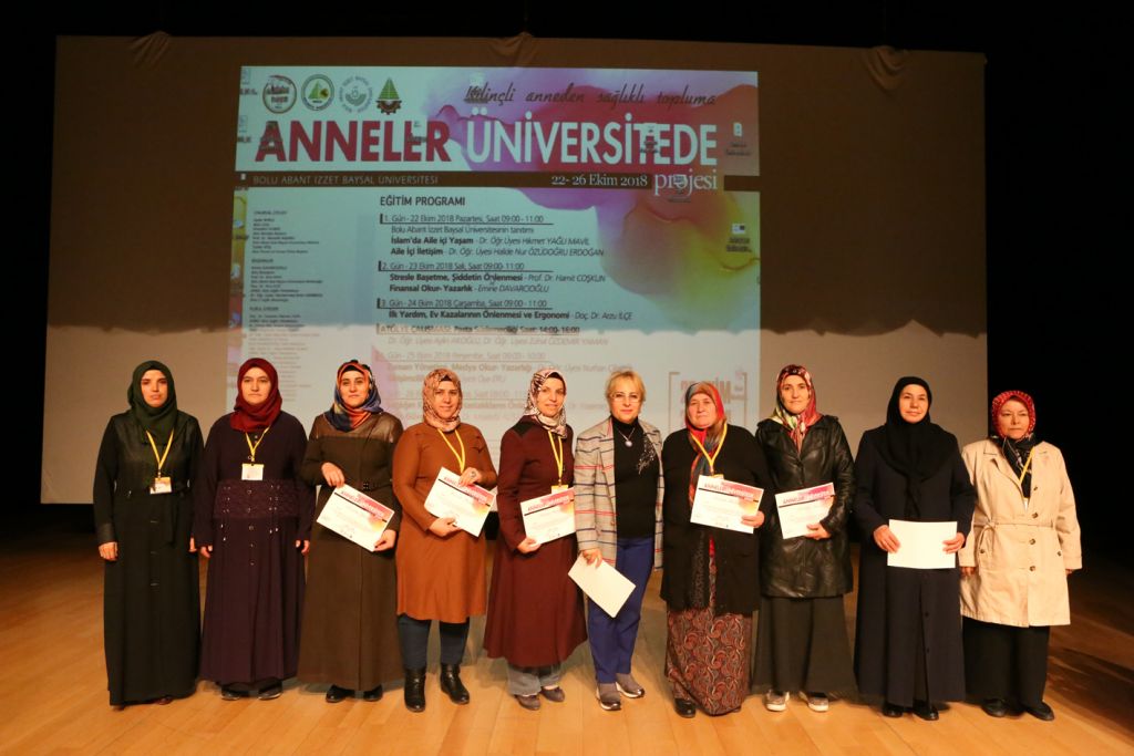 Bolu Valiliği, Bolu Belediye Başkanlığı, Bolu Abant İzzet Baysal Üniversitesi, Ticaret Sanayi Odası ve İl Sağlık Müdürlüğü işbirliğinde düzenlenen ve ana teması “Bilinçli anneden, sağlıklı topluma” olan proje kapsamında 23-75 yaş arası Bolulu anneler, ‘aile içi iletişim’, ‘aile ekonomisinde para yönetimi’, ‘hijyen kuralları’ gibi bir çok konuda akademisyenlerden ve alanında uzman kişilerden eğim aldı.