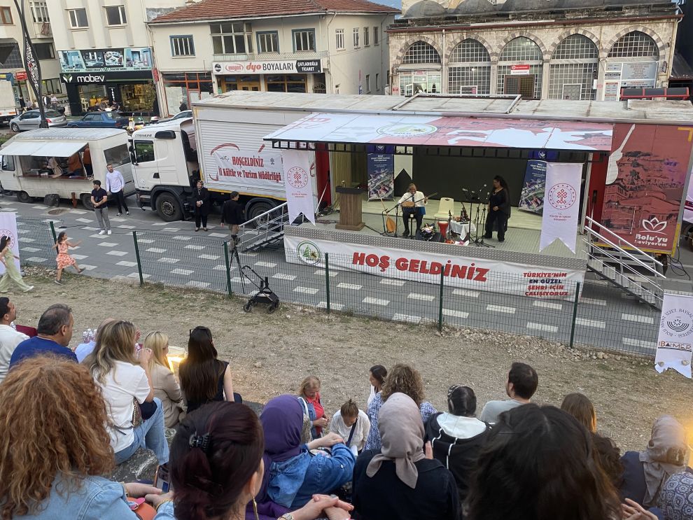 Akpınar Mahallesi İzzet Baysal Caddesi üzerindeki kalıntılarda gerçekleşen konserin solistleri, keman sanatçısı Gamze Çalık Çetin ve bağlama sanatçısı İbrahim Çetin oldu. Halk müziğinin sevilen ezgileri, antik taşlar arasında yankılandı; seyirciler de türkülere coşkuyla eşlik etti.