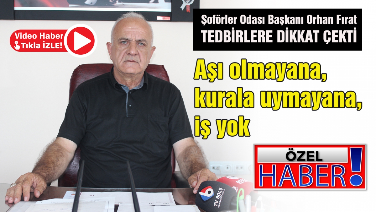 Bolu Şoförler Odası Başkanı Orhan Fırat, Covid-19 tedbirleri konusunda oda olarak gerçekleştirdikleri çalışmalar ve alınan tedbirler konusunda değerlendirmeler yaptı. Fırat odaya bağlı esnafın tedbirler konusunda son derece hassas davrandığını söyledi. Fırat alınan tedbirler konusunda şu değerlendirmeleri yaptı: