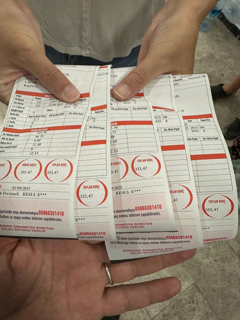 Çakmaklar Mahallesi 904. Sokak’ta bulunan Öztürk Sitesi C Blok apartmanının beş dairesine Bolu Belediyesi tarafından küsuratına kadar aynı su faturası bedeli kesildi. Beş apartman dairesine kesilen su faturası bedelinin 333,047 TL olduğu öğrenildi.