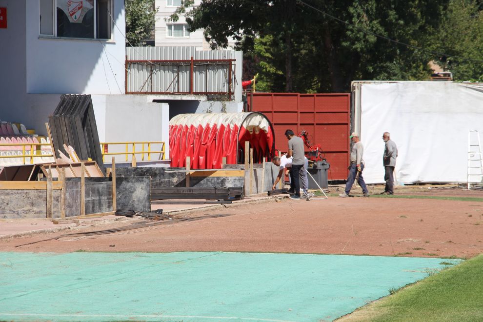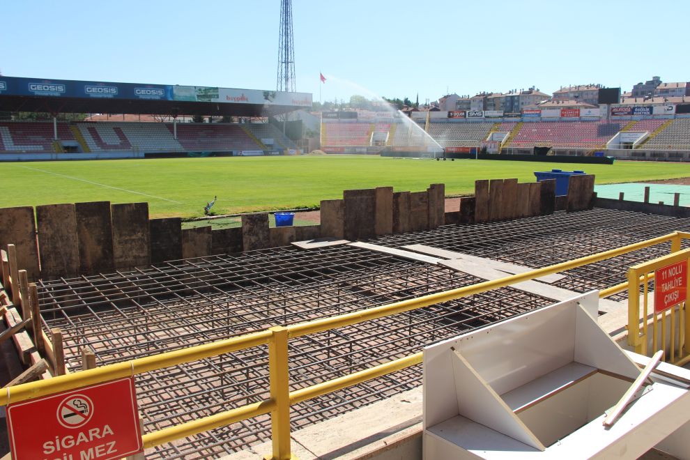 Yürütülen çalışmalar hakkında bilgi veren Müdür Bilgin, "Birinci prefabrik soyunma odaları, ortasında doping var, idari bölüm ikinci prefabrik, temsilci odası, toplantı salonu, basın odası hepsi orada bulunuyor. Maraton'un önünde geçici bir tribün yapılacak. 120 kişilik, 60 protokol, 60 gazetecilere. Seyirciyi tamamen kale arkasına alıyoruz. Misafir seyirci 140'a düşüyor, tampon daralacak. Bize 2 bin 700 gibi rakam kalıyor. Büyük temel pilot kameraların bölgesi. En üste pilot kameralar konacak. İkinci bölümde izleme, en altta bilgi işlem merkezi. Baştakiler gol çizgisi ve ofsayt kamerası olacak. Kapalı önündeki çalışmalar da bunlar" diye konuştu.
