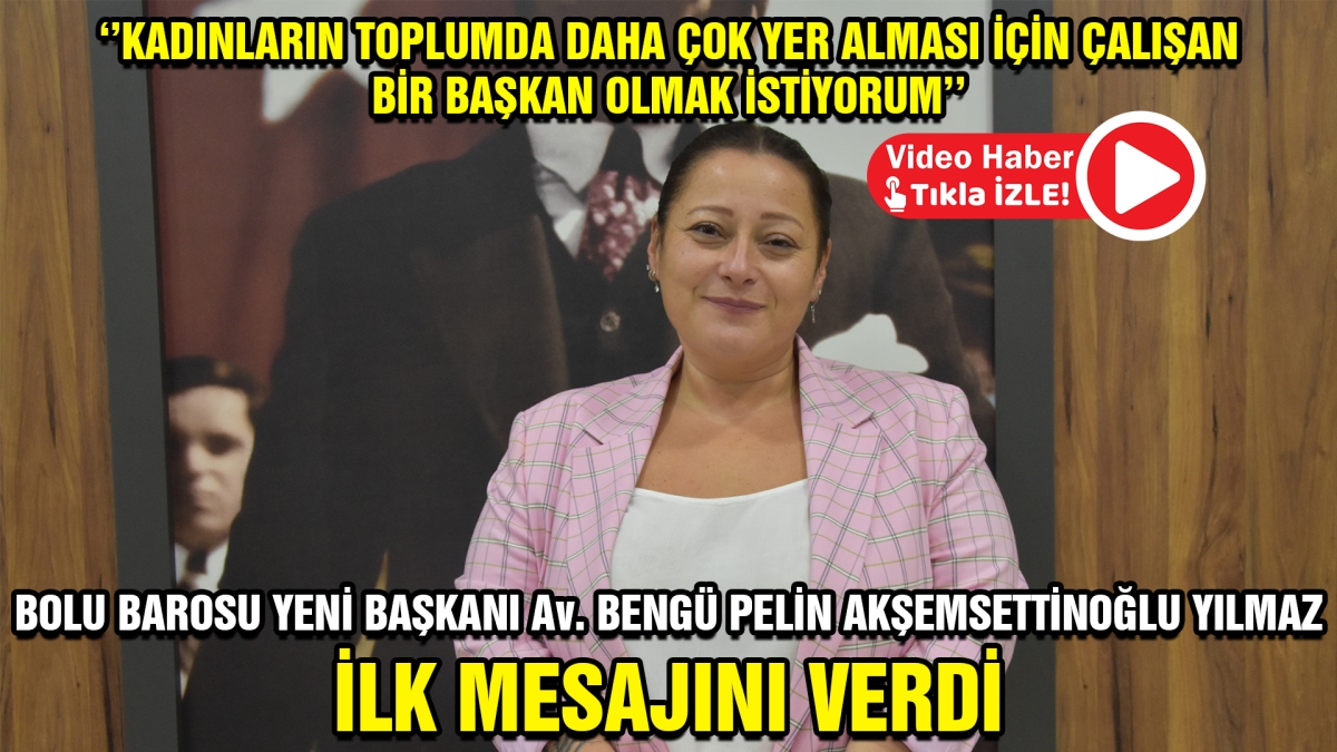 Bugün gerçekleştirilen Bolu Barosu başkanlık seçimlerinde 79 oy alarak Bolu Barosu’nun seçilmiş ilk kadın başkanı olan Av. Bengü Pelin Akşemsettinoğlu Yılmaz seçimin ardından ilk mesajını verdi. Av. Yılmaz Bolu Barosu’nun ilk seçilmiş kadın başkanı olduğu için çok mutlu olduğunu dile getirerek ‘’ Kadınlara toplumda daha çok yer veren bir başkan olarak görevime devam etmek istiyorum’’ ifadelerini kullandı.