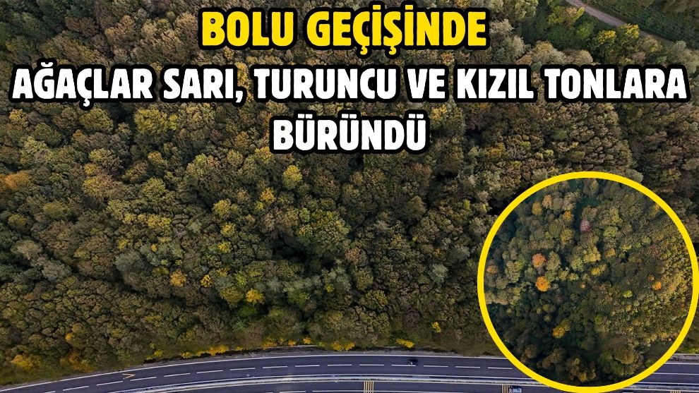 Türkiye'nin en önemli geçiş güzergahlarından biri olan Bolu Dağı'nda sonbaharın tüm renkleri bir arada görülüyor. D-100 kara yolunun Bolu Dağı mevkii ile Yeniçağa ilçesi geçişinde ağaçlar, sarı, turuncu ve kızıl tonlara bürünerek doğayı renklendirdi. D-100 kara yolundan geçen sürücüler, Bolu Dağı ve Yeniçağa geçişinde kartpostallık manzaralarla karşılaşıyor. Renk cümbüşüyle dikkat çeken ağaçlar, bölgeden geçen vatandaşlar tarafından cep telefonlarıyla görüntüleniyor. Sonbaharın en güzel tonlarını barındıran güzergah dronla görüntülendi.