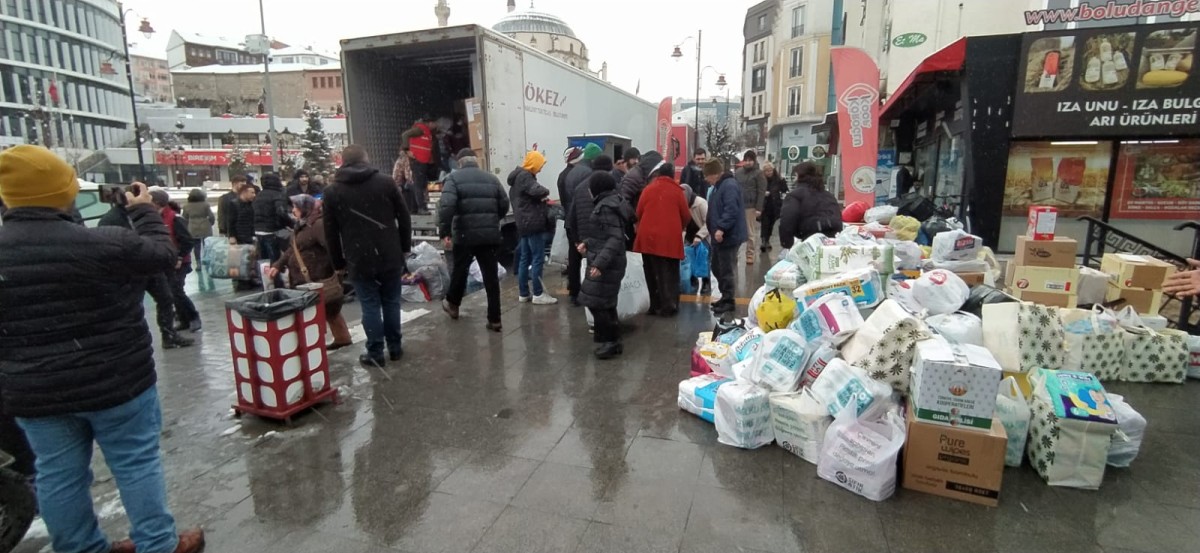 Bolu Belediye Başkanı Tanju Özcan, deprem sonrasında sosyal medya hesabından Bolu halkına giyecek yardımında bulunulması için çağrıda bulundu. Bolu halkı çağrıya kısa sürede cevap vererek Bolu Belediyesi önünde bekleyen yardım tırı önünde uzun kuyruklar oluşturdular. Depremin acısını iyi bilen Bolu halkı depem bölgesine gönderilmek üzere yüzerce giysi malzemesini yetkililere teslim ettiler. Yardımlar TIR’larla kısa sürede bölgeye gönderilecek.