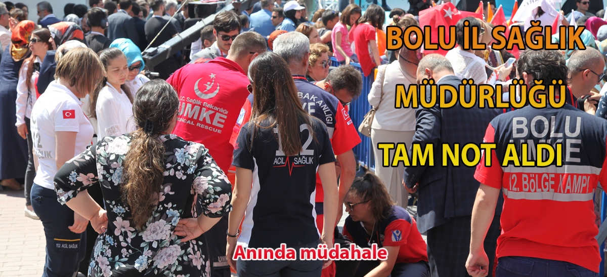 Başbakan Binali Yıldırım’ın Bolu mitinginde sıcak hava nedeniyle bazı vatandaşlar fenalık geçirdi. Alanda hazır bulunan sağlık ekipleri fenalaşan vatandaşlara anında müdahale ederek sedye ile miting alanının dışına çıkardı. Görevli doktorlar fenalaşan vatandaşları muayene ederek sağlık kontrollerini yaptılar. Bolu İl Sağlık Müdürü Dr. Öğretim Üyesi Muhammed Emin Demirkol alanda ekiplerin başında hazır bulundu. Sağlık ekiplerini yönlendiren Demirkol vatandaşlardan tam not aldı.