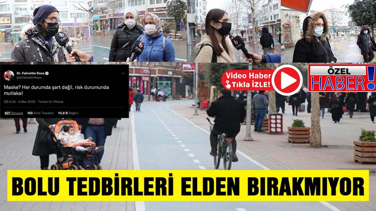 Koronavirüs salgını sebebiyle iki yıldan fazla bir süre maske kullanımından sonra Sağlık Bakanı Fahrettin KOCA yayımlanan bildiriye göre 3 Mart 2022 tarihinden itibaren açık alanda maske yasağını ortadan kaldırmıştı. Bolu halkı yayımlanan bildiriye rağmen açık alanda maske kullanmaya devam ediyor. Yapılan röportaja göre birçok nedenle maske kullanmaya devam eden Bolu halkı, başta soğuktan korunmak olmak üzere tedbiri de elden bırakmamak ,virüsten korunmak nedeniyle maske kullanımına devam etmeyi hedefliyor.