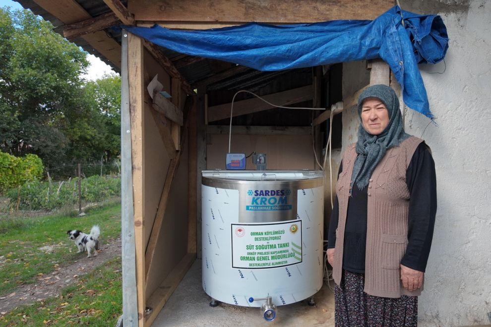 Süt soğutma tankı desteği alan Gürçam köyünden Ayşe Çelik, "Emekli olduktan sonra köye gelip hayvancılık yapmaya başladık. Sütlerimiz de sıcaklarda çok bozuluyordu. Saklaması zor oluyordu. Süt soğutma tankını alınca çok faydası oldu. Hem hijyenik hem de temiz. Şimdi çok rahat" dedi.
