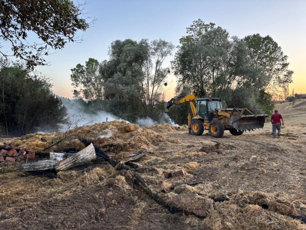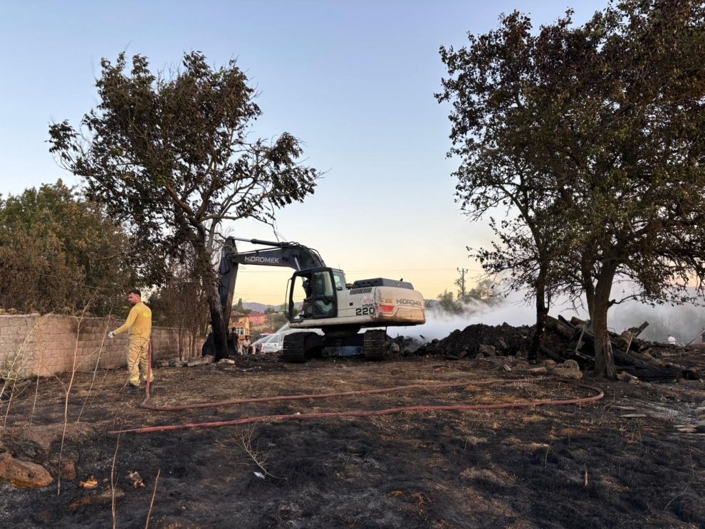 Yangının anızda başladığını söyleyen köy muhtarı Adem Kanbur ise, "Tarladan çıkmış, anız yanarak rüzgarın etkisiyle evlere sıçramış. İki ev, bir konteyner ev, iki samanlık ve iki ahır yandı. Allah devletimize zeval vermesin. Ekipler şu an yangını kontrol altına aldı" ifadelerini kullandı.