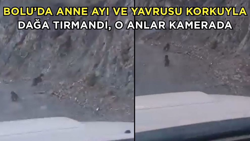 Olay, Bolu’nun Mengen ilçesinde ormanlık alanında meydana geldi. Yol kenarında yiyecek arayan anne ayı ile yavrusu, aniden karşılarına çıkan pikabı görünce korkuya kapıldı. Kaçacak yer arayan ayılar, aracın önünde metrelerce koşarak ardından dimdik yamacı tırmandı. Sonrasında ayılar gözden kayboldu. Cep telefonu ile kayda alınan görüntülerde, yavru ayının annesini takip ederek zorlu arazide hızla yukarıya çıkması dikkat çekti. O anlar sosyal medyada da büyük ilgi gördü.