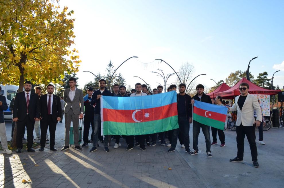 Azerbaycan'ın, işgali atlındaki Karabağ topraklarını kurtarmak için Ermenistan'a karşı kazandığı zaferin 5. yılı Bolu'da büyük coşkuyla kutlandı. Karabağ Zaferi'nin yıldönümü nedeniyle Bolu Abant İzzet Baysal Üniversitesi'nde öğrenim gören Azerbaycanlı öğrenciler, Bolu Ülkü Ocakları İl Başkanlığı ile AK Parti Gençlik Kolları Azerbaycan bayrağı ve pankartıyla yürüyüş yaparak kutladı. Büyük bir coşkuyla İzzet Baysal Caddesi'nde slogan atarak yürüyen gruba çevredeki vatandaşlar da alkışlarla destek verdi. Yürüyüşün ardından Bolu Abant İzzet Baysal Üniversitesi(BAİBÜ) Kamu Yönetimi Öğrencisi Senan Khuliyev basın açıklaması yaptı.