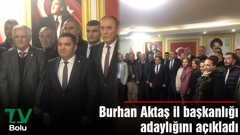 Parti binasında il başkanlığı adaylığını açıklayan Bolu Belediyesi İşletme ve İştirakler Müdürü Burhan Aktaş, Ahmet Örnekbaş ile yaptığı basın açıklamasında, Ahmet Örnekbaş'ın 14 ocak 2023 günü başkanlığa aday olmaması sebebiyle il ve ilçe yönetimlerinin uygun görmesi sonucu aday olduğunu açıkladı. Aktaş, "Mevcut il başkanım Sayın Ahmet Örnekbaş yayınladığı deklarasyonla 14 Ocak 2023 tarihinde yapılacak kongrede İl Başkanlığına talip olmadığını kamuoyuna duyurmuştur. Sayın Başkanımızın bir sonra ki duyurusunu yüce Türk milletinin meclisine katılma yönünde olacağını temenni ediyor öyle olmasını arzu ediyoruz. Sayın Ahmet Örnekbaş’ın aday olmaması sebebiyle boşalacak il başkanlığına il ve ilçelerimizin yönetimlerinin de uygun görmesi ile bu göreve talip olduğumu sayın Bolu’lu hemşerilerimize arz ederim. Cesurlar hareketi olarak tanımlanan ve mensup olmaktan gurur duyduğum İYİ Partimizin kuruluşundan bu yana il ilçe ve belde yönetimlerinde görev almış bütün gönüldaşlarımıza canı gönülden teşekkür ediyorum. 14 Ocakta yapılacak kongrede değerli delegelerimizde uygun görmesi halinde liderimiz Sayın Meral Akşener hanımefendiye çıktığı bu kutlu davada yeni yönetimimiz ile güçlü bir şekilde yanında olduğumuzu yapacağımız çalışmalar ile duyurmak istiyoruz saygılarımla’’ ifadelerini kullandı.