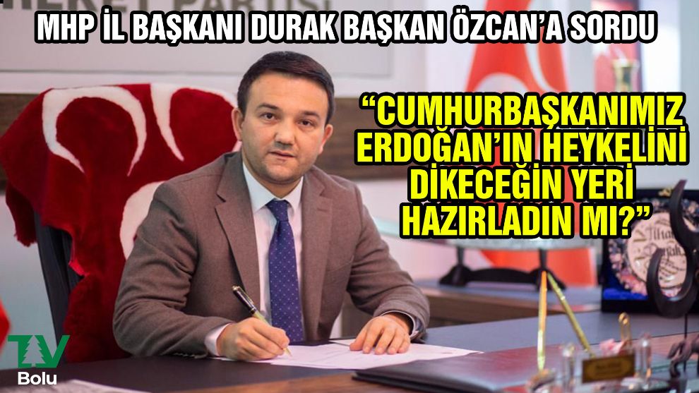 Bolu Belediye Başkanı Tanju Özcan’ın Mayıs ayı Meclis toplantısında söylediği; “Recep Tayyip Erdoğan seçimi bir kez daha kazanırsa Bolu’nun en görünür yerine devasa bir Erdoğan heykeli dikeceğim” sözünü gündeme taşıyan MHP İl Başkanı İlhan Durak, konu hakkında açıklamalarda bulundu.