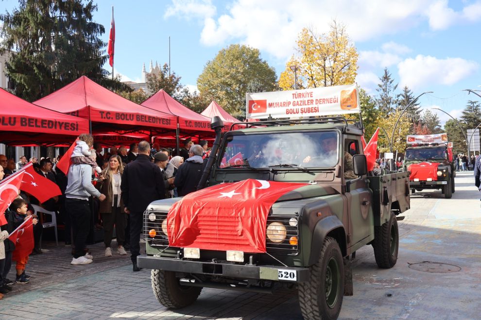 Cumhuriyetin ilanının 102. yılı dolayısıyla Bolu’da düzenlenen kutlama programı, sabah saatlerinde Anıtpark’taki çelenk sunma töreni ile başladı. Boluluların yoğun ilgi gösterdiği tören alanı, kırmızı-beyaz bayraklarla donatılırken vatandaşlar, çocuklarıyla birlikte Cumhuriyet coşkusuna ortak oldu.