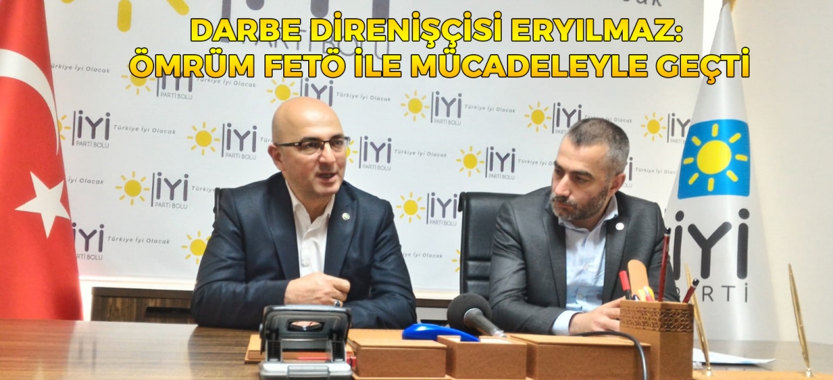 İYİ Parti Genel İdare Kurulu Üyeleri Fatih Eryılmaz ve Onur Aydın, İzzet Baysal Şükran Günleri kapsamında geldikleri Bolu’da partilerinin il teşkilatını ziyaret etti. 15 Temmuz darbe girişimi gecesi Ankara Emniyet Müdürlüğü önünde emniyet amiri olarak direnişi başlatan ve darbecilerin açtığı ateş sonucu yaralanarak gazi olan, görevine geri döndükten sonra istifa ederek siyasete giren Eryılmaz, TV Bolu mikrofonlarına açıklama yaptı. Eryılmaz, ömrünün FETÖ ile mücadele ile geçtiğini söyleyerek, memlekette temiz bir sayfa açmak için İYİ Parti’de siyasete girdiğini söyledi. FETÖ ile mücadele eden birisi olarak bu konuda partisine yönelik eleştirilere tepki gösteren Eryılmaz, “Burada bizim partimize yönelik bu tarz ithamlar en basit kelimeyle ayıptır. Bu hareket tabanın hareketidir” dedi.