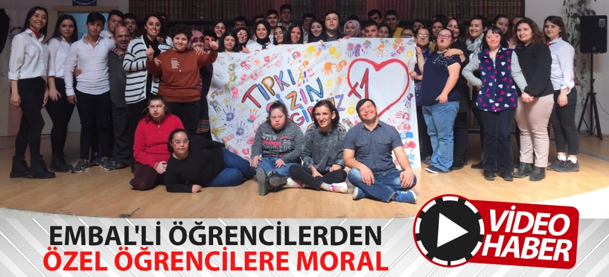 EMBAL'de eğitim gören 30 öğrenci, Müdür Yardımcısı Tuğba Ulusoy Ercan ve Resim Öğretmeni Seçil Serin ile birlikte, Bolu Kent Konseyi Özel Biryeler Meclisi tarafından hazırlanan 'Üretimde Ben de Varım' projesi kapsamında Halk Eğitim Merkezi bünyesinde açılan kursa katılan özel öğrencilerle bir araya geldi. Liseliler, parmak boyalarla ellerini bastıkları 'Tıpkı sizin gibiyiz' yazılı afiş ile ziyaret ettikleri öğrencilerle birlikte oldu, vakit geçirdi. Liseliler, özel öğrencilerle dans edip onlara moral verdi. EMBAL halk oyunları ekibi de özel öğrenciler için gösteri sundu.