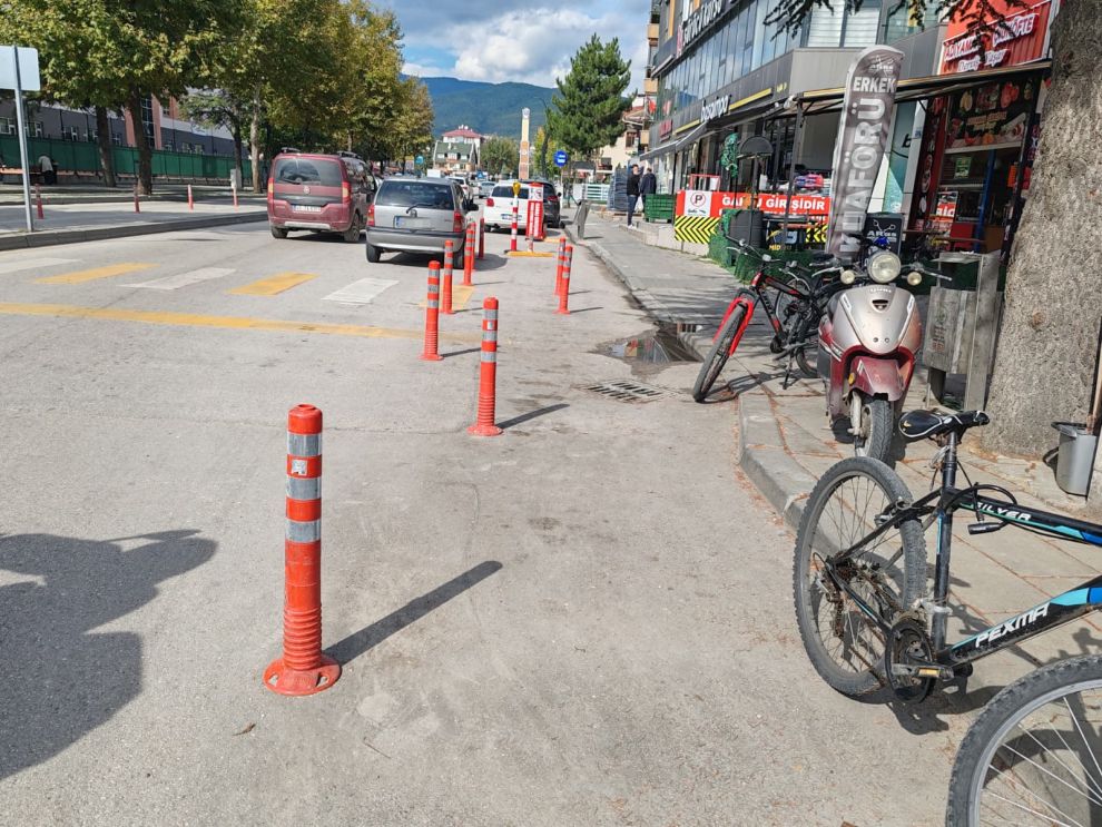 Bolu Belediyesi, Bolu'nun en yoğun mahallelerinden biri olan Sağlık Mahallesi Şehitler Caddesi üzerinde bulunan 3-4 araçlık Otomobil park yerini dubalarla kapattı. Kapatılan park yerinin hemen önünde faaliyet gösteren işletme sahipleri Bolu Belediyesi'ne seslenerek yardım istedi.