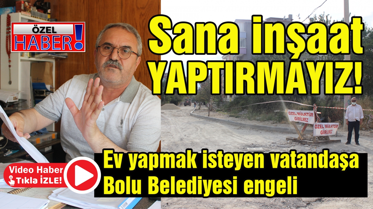 Bolu Belediyesi hakkında İrfan Yılmaz adlı vatandaşın iddiaları yenilir yutulur cinsten değil. Yılmaz TV Bolu’ya yaptığı özel açıklamada sahip olduğu arsasına inşaat yapmak için Bolu Belediyesi’ne başvurduğunu ancak Bolu Belediyesi yetkilileri tarafından kendisine verilen cevapta sahip olduğu arsanın neredeyse yarısının yol genişletme çalışması için Bolu Belediyesi’ne “gönüllü” bağış yapması halinde işleme alacakları cevabını aldığını söyledi. Yılmaz belediyenin talebini yerine getirmezse hiçbir şekilde arsasına proje yaptırılmayacağı belediye yetkilileri tarafından kendisine söylendiğini iddia etti.
