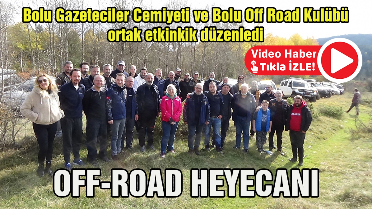 Bolu Gazeteciler Cemiyeti ve Bolu Off Road kulübü Bolu’daki yerel ve ulusal gazetecilerle Off Road Gezisi düzenledi. Off Road Kulübü üyelerinin araçlarıyla At Yaylası ve ormanlarda arazi araçlarıyla gezinti yapan gazeteciler keyifli dakikalar geçirdi. Arazi araçlarıyla Bolu'nun doğa harikası alanlarını gezen gazeteciler daha sonra kulüp üyeleri ile birlikte piknik yaptı.