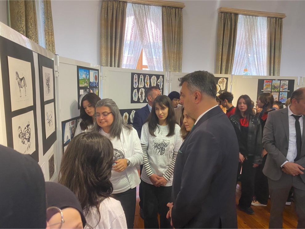 Milli Eğitim Müdürü Fatih Öncü, sergi alanını gezerek öğrencilerin hazırladığı çalışmaları tek tek inceledi ve eserlerin ortaya çıkış süreçleri hakkında bilgi aldı. Öğrencilerin farklı teknikler kullanarak hazırladığı grafik tasarımlar, hem görsellikleri hem de özgün fikirleriyle dikkat çekti. Sanatseverler tarafından yoğun ilgi gören sergide, öğrencilerin yaratıcı düşünce ve tasarım becerilerinin yanı sıra farklı tekniklerde yaptıkları uygulamalar da öne çıktı. Sergide; karakalem çalışmaları, mürekkepli kalemle siyah-beyaz tasarımlar, mono baskı tekniği denemeleri ve linolyum baskı tekniği uygulamaları yer aldı. Ayrıca tipografi, pul tasarımı, kitap kapağı tasarımı, karakter oluşturma, nokta-çizgi-leke ile yüzey düzenlemeleri, stilizasyon ve soyutlama çalışmaları da dikkat çekici eserler arasında sergilendi.