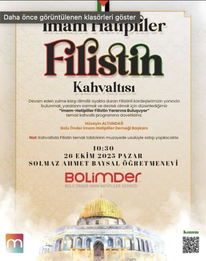 Etkinlikte Filistin temalı tablolar, müzayede yöntemiyle satışa sunulacak. Elde edilecek gelir, Filistinli kardeşlerin ihtiyaçları için kullanılacak. Bolu Önder, tüm halkı bu duyarlı buluşmaya davet etti.