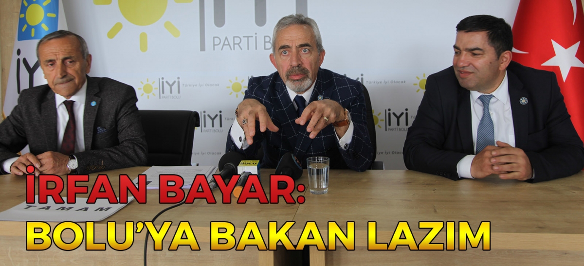 Bolu’nun uzun yıllar bakan çıkaramadığını hatırlatan İrfan Bayar,” Üç milletvekilimize huzurlarınızda teşekkür ettim. Bolu' nun bakana ihtiyacı var. Buradan altını çiziyorum. Bolu'nun bakana ihtiyacı var. Uzun zamandır Bolu'muzdan bakan çıkmıyor. Neden çıkmıyor? Bakan çıkaran illerimize bakın tablo ortada. Peki benim Bolu'mun nesi eksik? İki tane mega kentin ortasında, her iki kentin de bahçesi olan, onları zinde tutan, bir ile ev sahipliği yapıyoruz. Benim Bolu'm bu kadar önemli ve her şeyin en iyisine layık. Benim insanım mütevazı, candan ama benim Bolu'm bakan çıkaramıyor. Buradan Bolu'muzdaki diğer siyasi partilere sesleniyorum. Dostlarıma, kardeşlerime. Allah aşkına Bolu'dan bakan olacak kişileri tespit edin. Bolu'dan bakan çıksın artık. Benim sorunlarımı bakanla çözmem daha kolay. Neden benim milletvekillerim Bolu’ya bir bakanlık getiremiyor.” İfadelerini kullandı.