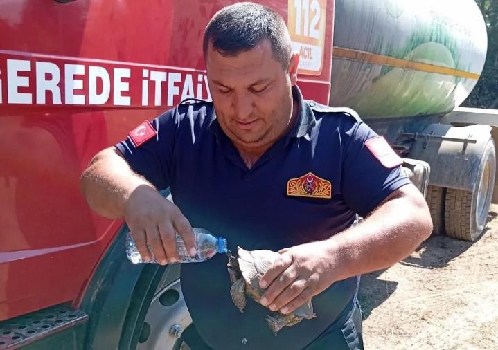 Yangın sırasında alevlerin arasından yarı yanmış şekilde çıkarılan bir kaplumbağa, itfaiye eri Erkan Kılıç tarafından pet şişedeki su ile soğutuldu ve ardından su içmesi sağlandı. Bu duyarlı davranış, sosyal medyada kısa sürede büyük beğeni topladı.