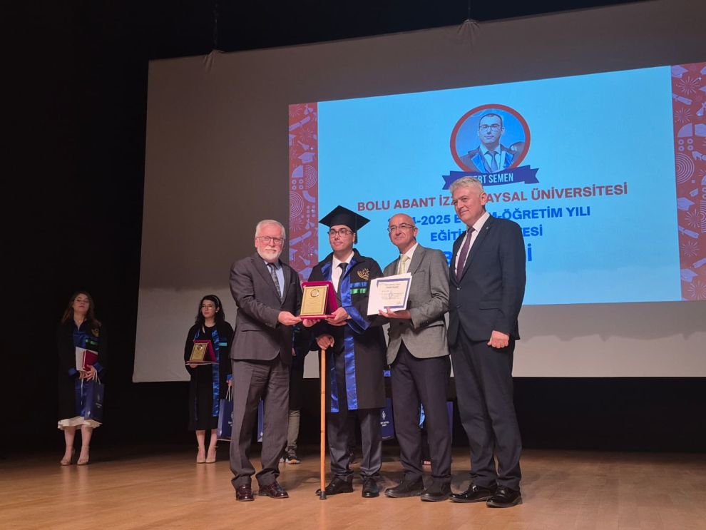 2024-2025 Akademik Yılında bölümlerini dereceyle bitiren öğrenciler için İzzet Baysal Vakfı (İBV) tarafından ödül töreni gerçekleştirildi. Bolu İzzet Baysal Üniversitesi Kültür Merkezi Mavi Salonda düzenlenen törene İzzet Baysal Vakfı Başkanvekili Fatih Yamaner’in sözleri damga vurdu. Fatih Yamaner yaptığı konuşma ile adeta Bolu halkının duygularına tercüman oldu. Yaklaşan atama dönemini işaret eden Yamaner, “Yaklaşan rektör adaylığı ve atanma sürecinde, Devletimizden beklentisi şu olurdu: İzzet Baysal, kuruduğu üniversitenin başında bilime, liyakate, şeffaflığa ve gençliğin gelişimine öncelik veren bir rektör görmek ister. Onun gözünde rektör sadece idare eden değil, ilham veren, vizyon çizen, eserlere sahip çıkan ve aynı zamanda öğrencinin, akademisyenin şehrin güvendiği bir lider olmalı” ifadelerini kullandı.