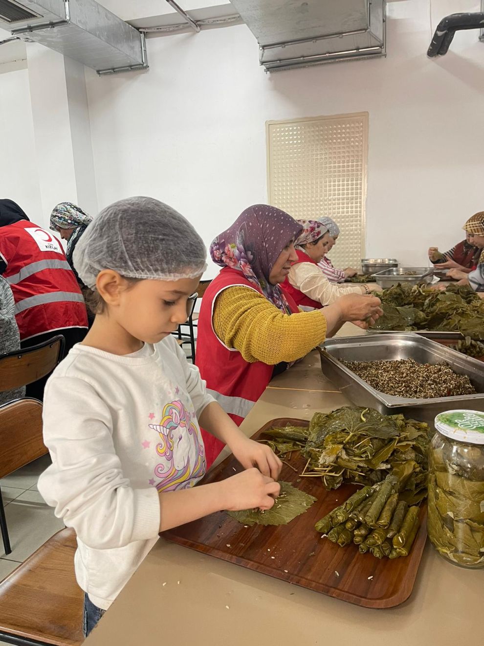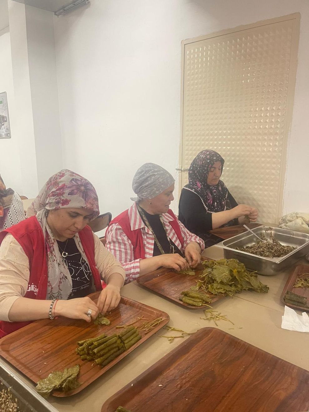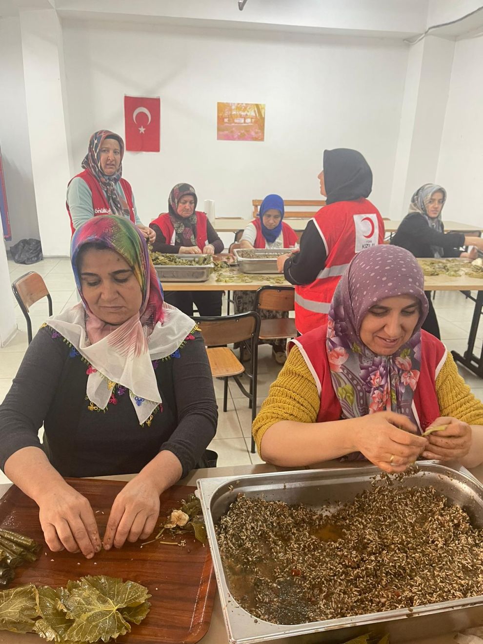 Depremden etkilenen kentlerden ayrılmak zorunda kalan vatandaşlar Bolu'daki Hattat Emin Barın Yurdu'nda konaklıyor. Yurttaki depremzede kadınların yemek yapmayı özlediklerini söylemesi üzerine Türk Kızılay Kadın Teşkilatı harekete geçti. Kızılay ekipleri, İHH İnsani Yardım Vakfı işbirliğiyle depremzede kadınlara yönelik etkinlik düzenledi. Yurtta kalan depremzede kadınlar yurttaki mutfakta bir araya geldi. Hamarat eller, hep birlikte yaprak sarmalarını önce kaynattı sonra iç hazırlayıp, işe koyuldu. Kadınlar birlikte yörelerinin türkülerini söyleyerek yaprak sarması sardı. Hazırlanan kazan dolusu sarma, yine yurtta kalan depremzedelere ikram edildi. Kadınlar etkinlik için Kızılay ekiplerine teşekkür etti.