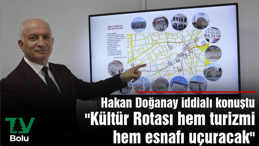 Kültür rotası üzerindeki alanlara QR kodlu tabelalar yerleştirildiğini kaydeden Doğanay, “Bolu’yu tanıtırken aynı zamanda teknolojiyi kullanmak gerekiyor. Artık insanlar ellerine defter, kitap, harita alarak gezmek istemiyorlar. Akıllı telefonun QR kodunu açıp yerleştirilen cam tabelaları okutacak. Rehbersiz gezse bile gittiği yerin resmi bilgisini öğrenebilecek. Bu sayede bilgi kirliliğini ortadan kaldırmış olacağız. Kültür turu yapan seyahat acentalarını davet edeceğiz. Bu turu onlara anlatacağız. Bu 13 yer içerisinde olan esnaflarda kendisini hazırlamalı. Birkaç dilde merhaba, hoş geldiniz, günaydın demeyi öğrenmeli. Güler yüzlü olmalı. Ne sattığından daha çok ne verebildiği önemlidir. Bu hattaki esnaflar Bolu tarihi ile ilgili bilgiler bilmeli. Tüm esnaflar birer gönüllü turist rehberi olacak. Elçi olacaklar. Bolu’nun dışarı açılan kapısı olacaklar. “ şeklinde konuştu.