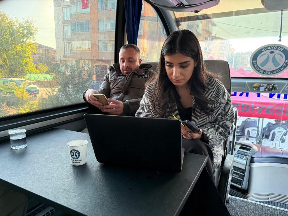 Sendika tarafından gönderilen otobüs, ilk duruşmanın başladığı 7 Temmuz’dan itibaren tüm dava sürecinde basın mensuplarına hizmet verdi. Gazetecilere rahat bir çalışma ortamı sunan sendika otobüsü, aynı zamanda basın emekçilerinin temel ihtiyaçlarını da karşıladı.