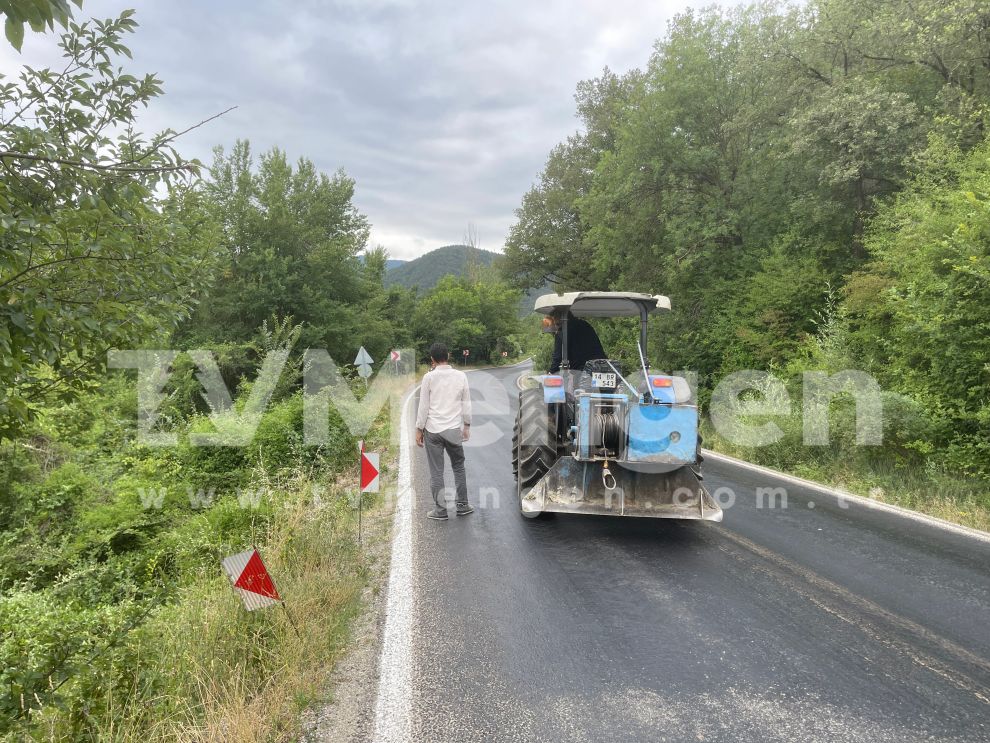 Olay yerine gelen Trafik Jandarma ekipleri güvenlik önlemlerini alarak yolu kapattı ve orada bulunun Elemen Köyü muhtarı oktay Güven traktörü ile aracı yuvarlandığı yerden çıkardı.