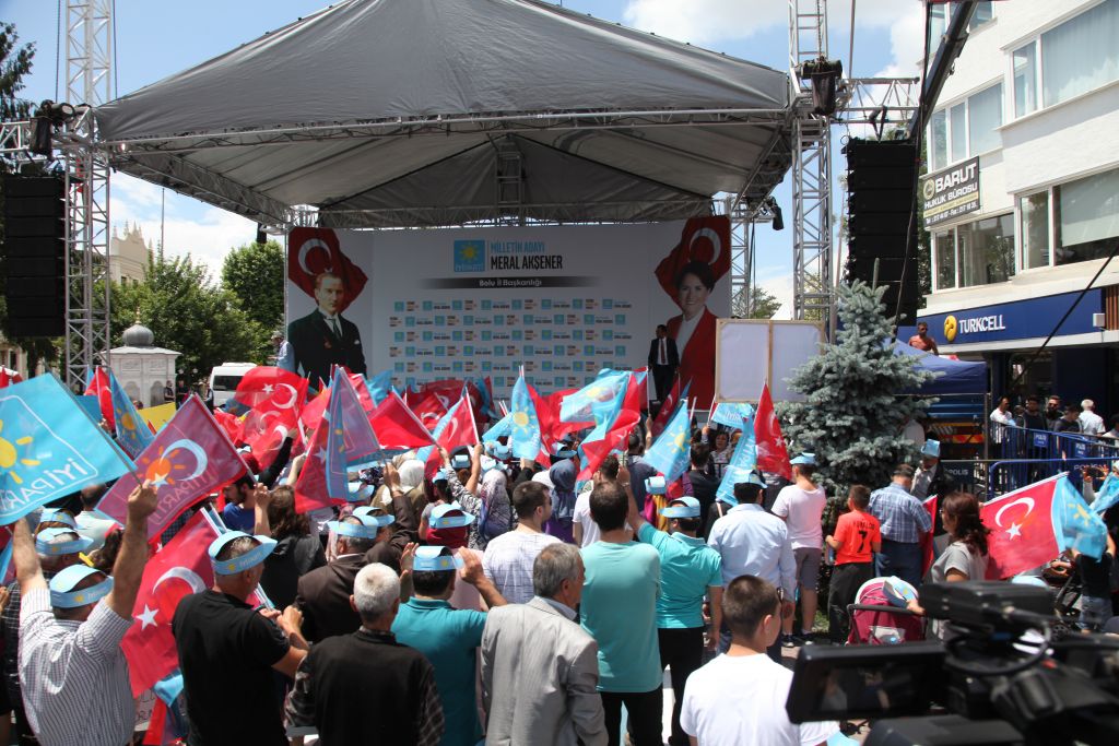 Etkili olan sağanak nedeniyle konuşmasını kısa tutan Akşener, partisinin milletvekili adaylarını tanıtmasının ardından Düzce'de mitinge katılmak üzere kentten ayrıldı.