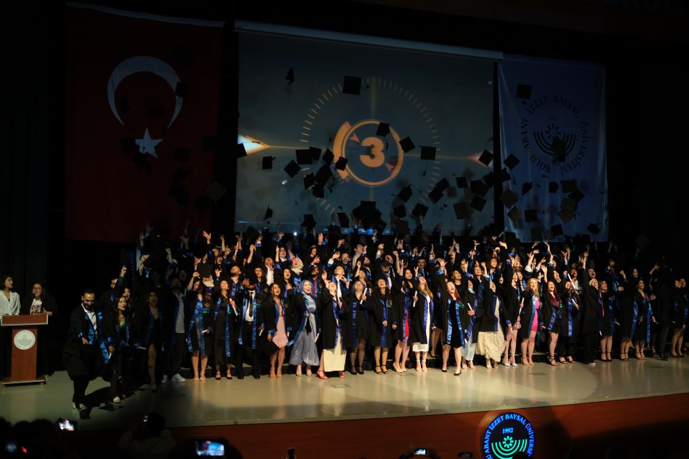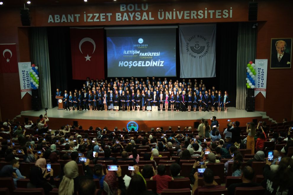 Bolu Abant İzzet Baysal Üniversitesi (BAİBÜ) Kongre Merkezi Bordo Salonda düzenlenen mezuniyet töreninde İletişim Fakültesi çatısı altında öğrenim gören Gazetecilik, Halkla İlişkiler ve Radyo, Televizyon ve Sinema bölümlerinden 180 öğrenci mezuniyet sevinci yaşadı. Saygı duruşu ve İstiklal Marşı ile başlayan program, bölüm başkanlarının konuşmaları ile devam etti.
