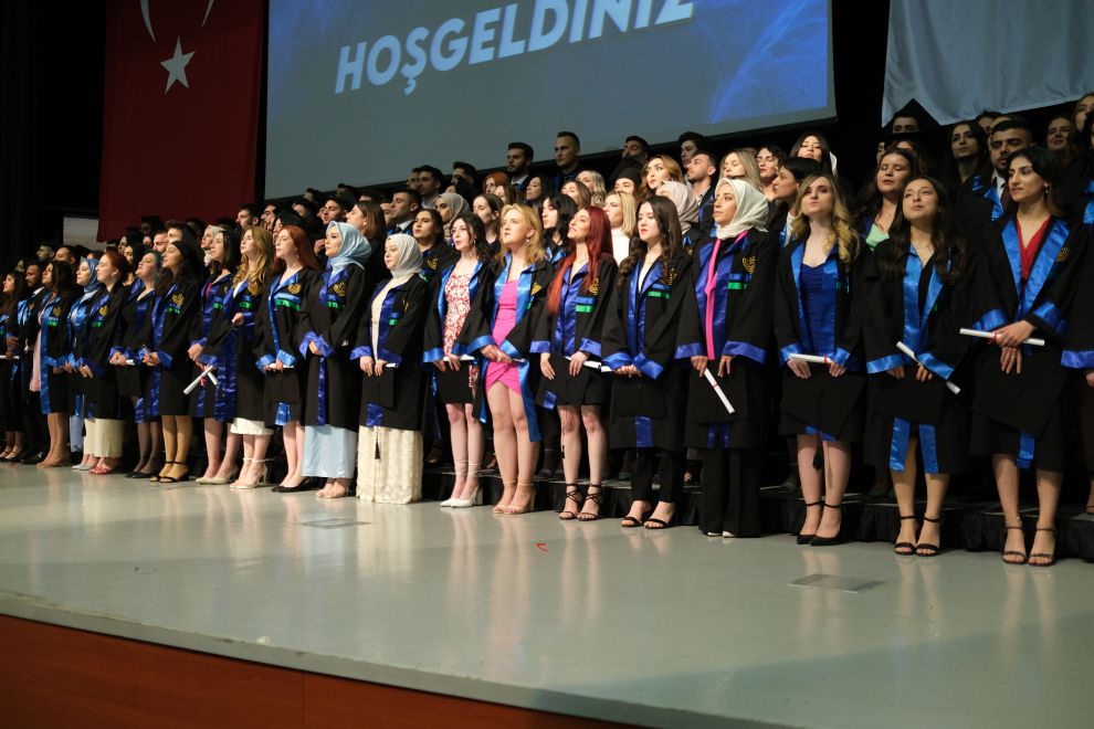 Fakülte birincisi Eda Gonca'nın İletişim Fakültesi yaş kütüğüne isim plakasının çakması, bölüm birincilerinin başarı belgelerinin öğretim görevlileri tarafından takdim edilmesi ve diploma takdim töreni ile devam eden program, iletişim yemini ve kep atma töreni ile son buldu.