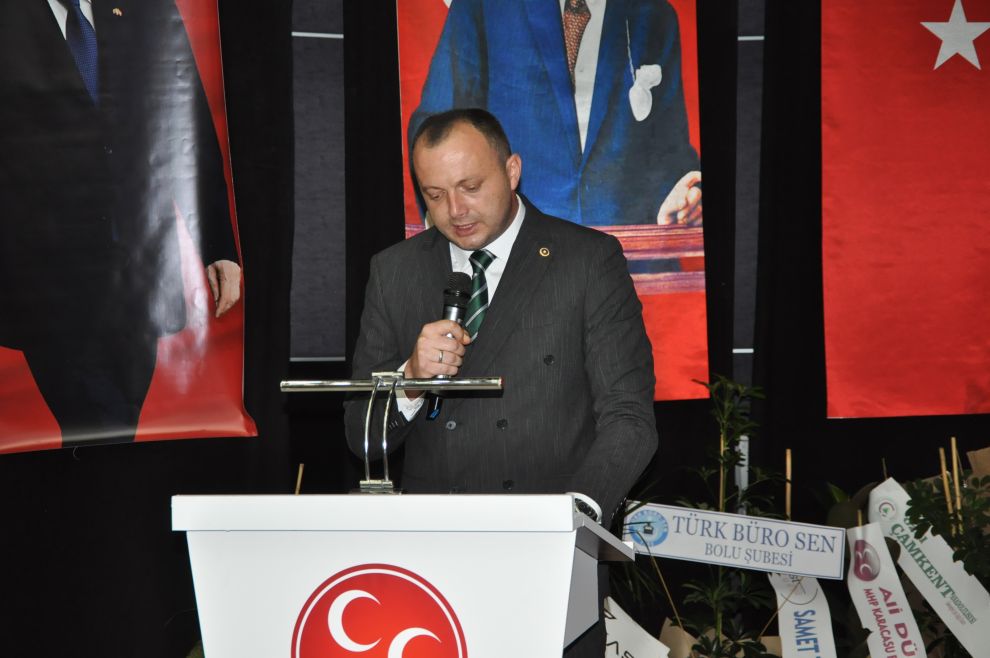 Akgül’ün ardından kürsüye MHP Genel Başkan Yardımcısı Yaşar Yıldırım çıktı. Genel Başkan Yardımcısı Yıldırım yaptığı konuşmada ilimize dair önemli mesajlar verdi. Yıldırım konuşmasında, “14 Mayıs’ta, 28 Mayıs’ta gerek Cumhurbaşkanlığı seçimlerinde Sayın Cumhurbaşkanımıza oy veren, vermeye çalıştıran, çalışan; gerek 14 Mayıs’ta bir destan yazan, burada olan veya olmayan Ülkü Ocakları mensuplarımıza, Milliyetçi Hareket Partisi mensuplarımıza, ilimize, ilçemize, beldemize, kadın kollarımıza, bizimle saf tutup bu zafere katkıda bulunanlara, hepsine, Milliyetçi Hareket Partisi Genel Merkezi, Milliyetçi Hareket Partisi ve Ülkücü Hareket adına çok çok teşekkür ediyorum. Allah hepinizden razı olsun. Siz bir zafer getirdiniz, bir kahramanlık destanını yazdınız. Hiç kimsenin ihtimal veremediği veya yok saydığı bir sonucu aldınız. 2023 seçimlerinin mutlak galibi Cumhurbaşkanlığı seçimlerinde Sayın Cumhurbaşkanımız Recep Tayyip Erdoğan’dır. Hilafsız, amasız, fakatsız, tartışmasız bir şekilde açık arayla sonuç almıştır. Yine 2023 seçimlerinin kazanan ittifakı Cumhur İttifakıdır. Cumhur İttifakı da hem Cumhurbaşkanlığı seçimlerinde hem de parlemento seçimlerinde açık arayla sonuç almıştır. İttifakın da nasıl olacağını herkese göstermiştir. Arkadaşınızı satmamıştır, aleyhinde çalışmamıştır. Kol kola girmiştir, yarıştığı yerde adam gibi yarışmış; beraber olduğu yerde adam gibi beraber olmuştur. Yine 2023 seçimlerinin Bolu’daki galibi Milliyetçi Hareket Partisidir. Bu tartışılmaz. Milliyetçi Hareket Partisi’ni sevmeyen iki Fatih vardır. Biri Fatih Altaylı biri Fatih Portakal. Onların ikisi de Milliyetçi Hareket Partisinin düşmanıdır. Günahları kadar sevmezler, ama elhamdülillah Rabbim onu gösterdi bize. Her ikisi de dedi ki ‘Bu seçimin galibi Milliyetçi Hareket Partisi’dir.’ Biz düşmanımıza bunu söylettik. Biz bizi sevmeyene, bizi hazmedemeyenlere bunları söylettik. Ne zaman bu sözü tekrar ettireceğiz? 31 Mart 2024’te. Bolu’da nasıl belediye başkanlığı yapılacağını, halk nasıl hizmet edileceğini, nelerin yapılıp nelerin yapılamayacağını, bugüne kadar yapılanın da sadece bir aldatma olduğunu yarın 31 Mart’ta Allah’ın lütfu, ihsanı, keremiyle Milliyetçi Hareket Partisinin adayı Belediye Başkanı olacak ve bütün Bolu’ya, Türkiye’ye duyuracaktır. Bundan hiç kimsenin şüphesi olmasın” dedi.