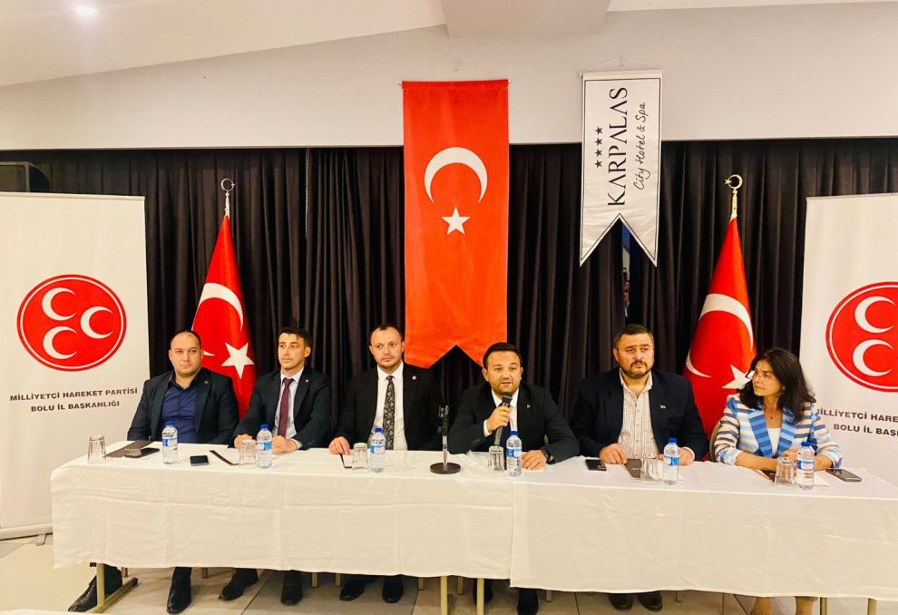 Açıklamasının devamında yerel seçimleri işaret eden Durak ayrıca, “Milliyetçi Ülkücü Hareket olarak yeni zaferlere hep birlikte koşmaya devam edeceğiz. Bildiğiniz gibi önümüzde 31 Mart 2024 Mahalli İdareler Seçimleri var. Bu seçimlerde de Allah’ın izniyle Bilge Liderimiz, Genel Başkanımız Dr. Devlet Bahçeli Beyefendinin takdirleriyle inşallah yine zafere ulaşacağımıza canı gönülden inanıyorum. Bu inancımın en büyük kaynağı önce Bilge Liderimiz sonra ise siz kıymetli ülküdaşlarımızsınız. İnanıyorum, çünkü gece gündüz demeden, yılmadan, yorulmadan, yıkılmadan çalışıyoruz, çalışacağız ve Rabbimin izniyle yine zafer kazanacağız. Bu inanç ve azimle 31 Mart akşamı Bolu Belediyesi burçlarına üç hilalli sancağımızı sizlerle birlikte asacağız. Tarihi ve doğasıyla ülkemizin en güzel şehirlerden olan Bolu’muzu Milliyetçi Ülkücü Hareketle, MHP Belediyeciliğiyle buluşturacağız. İşte o zaman vatandaşlarımız alın terinin, emeğin, belediyeciliğin ve belediye olarak hizmet etmenin aslında ne olduğunu görecek ve inşallah bu çalışmalarımızla da 2029’da da halkımızın teveccühünü kazanacağız” ifadelerini kullandı.