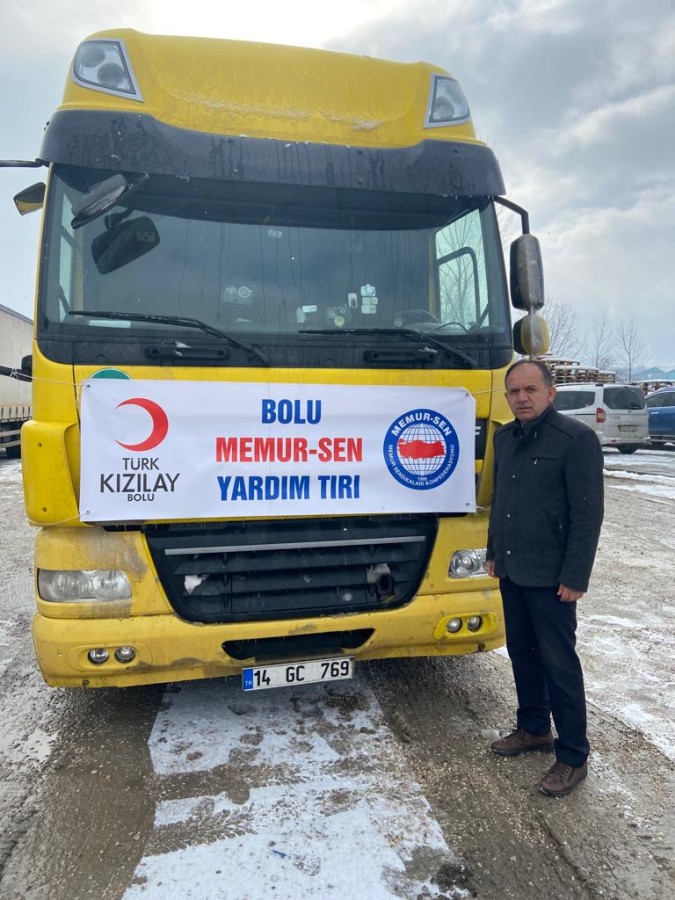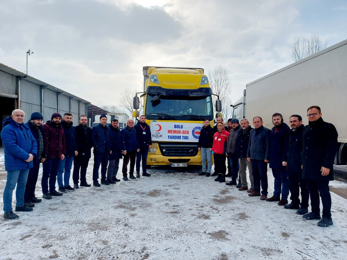 Kahramanmaraş merkezli 10 ili vuran deprem felaketinin ardından Bolu halkı depremzedeler için seferber oldu. Bolu Memur-Sen İl Temsilciliği tarafından depremzedelere gönderilmek üzere yardım kolileri hazırlandı. Memur-Sen üyeleri tarafından toplanan ıslak mendil, çocuk bezi ve sudan oluşan yardım kolilerinin bulunduğu TIR, Bolu Kızılay koordinasyonunda deprem bölgesine uğurlandı. Bolu Memur-Sen tarafından yapılan açıklamada, “Memur-Sen Bolu İl Temsilciliği olarak Deprem Bölgesine gönderilmek üzere üyelerimizden gelen ıslak mendil,çocuk bezi ve sudan oluşan yardım tırımızı Bolu Kızılay koordinasyonuyla deprem bölgesine uğurladık. Yardım faaliyetlerimizi ara vermeden sürdüreceğiz. Milletçe yaraları sarmaya, acıları paylaşmaya gayret edeceğiz. Yüreğimiz deprem bölgesinde, dualarımız oradakiler için. Bu vesileyle depremde hayatlarını kaybeden vatandaşlarımıza Allah'tan rahmet, yaralılara acil şifalar, aziz milletimize başsağlığı ve geçmiş olsun dileklerimizi iletiyoruz.” ifadeleri kullanıldı.