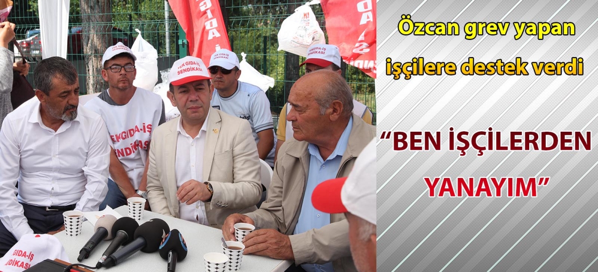 Tanju Özcan grev çadırında basın mensuplarına yaptığı açıklamada; “Bizim bir iş kanunumuz var, biliyorsunuz. Bu iş kanununa göre burada yapılan eylem son derece yasal bir hak arama eylemi. Şimdi Türkiye’de resmi enflasyon yüzde 15’lere gelmiş ama mutfak üzerinden hesaplanan enflasyon yüzde 30 düzeyinde. Dolayısıyla işçinin yüzde 19 zam istemesi çok fazla bir istek gibi değerlendirilmemeli. Onu açık olarak söylüyoruz. Dolayısıyla buradan işveren yetkililerine sesleniyoruz. Siz bunun gereğini yapın. İşçi arkadaşlarımız alın teri döküyorlar ve bunun karşılığında en azından enflasyonun, resmi enflasyonun, bir, iki puan üzerinde zam istemeleri de son derece doğal. Gerçek enflasyon hesaplanabilse az önce söylediğim gibi, istediğiniz zammın gerçek enflasyonun altında olduğu da ortaya çıkmış olacak. Biz siyasi görüşümüz, dünya görüşümüz itibariyle her zaman emekten yana olduk, emekçiden yana olduk. Çalışandan, alın teri dökenden yana olduk. Dün bunu Gerede’de deri işçileriyle dayanışmamızda gösterdik, bugün de sizinle dayanışma içerisindeyiz. Sonuna kadar da haklı olduğunuzu görüyoruz ve yanınızdayız. Dün buraya geleceğimi öğrenmiş işveren yetkilileri. Dediler ki, bizi de ziyaret eder misiniz? Ben anlaşmazlığın bu noktada olduğunu biliyordum zaten. Benden şunu yapmamı istiyorsanız yapmam dedim. Ben arabulucu değilim dedim. Ben burada tarafsız değilim. Ben işçi arkadaşlarımdan, bugün grev yapan arkadaşlarımdan yana tarafım. Eğer işverenle görüşmem gerekecekse, önümüzdeki günlerde görüşmem icap ederse, oraya da tarafsız bir kişi gibi değil, tıpkı sizin sendika başkanınız gibi sizin hakkınızı istemek amacıyla giderim. İnşallah o noktaya kadar da gelmez. Bu anlaşmazlığın kısa sürede çözülmesi gerektiğini düşünüyorum. Burada gelinden noktada sizin istediğinizle işverenin verdiği arasında, işverenin vermeye razı olduğu arasında çok fazla bir şey kalmamış. Yani bu grevin uzun sürmesi işverene de zarar verebilir. O yüzden işveren yetkililerine de buradan çağrıda bulunuyorum, tekrar söylüyorum. İşçiler hak etmediği bir şeyi istemiyor. Alın terinin karşılığını istiyor. İstedikleri rakamlar afaki rakamlar değil. Şirketi, işvereni zora sokacak rakamlar değil. O yüzden bunun gereğini yapmaları gerekecek. Ben de, sayın il başkanımız, ilçe başkanımız da burada bu konuyu yakından takip etmeye devam edeceğiz. Her zaman sizlerle dayanışma içinde olacağız. Bunu bilmenizi istiyoruz” ifadelerini kullandı.
