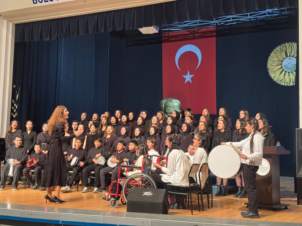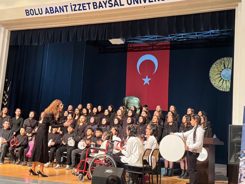 Dağkent Kıroğlu ESV Ortaokulu Özel Eğitim Sınıfı öğrencileri, Köroğlu Ortaokulu Özel Eğitim Sınıfı öğrencileri ve Mehmet Tanrıkulu Sağlık Hizmetleri Meslek Yüksek Okulu Çocuk Gelişimi Bölümü öğrencilerinden oluşan koro izleyenleri büyüledi.