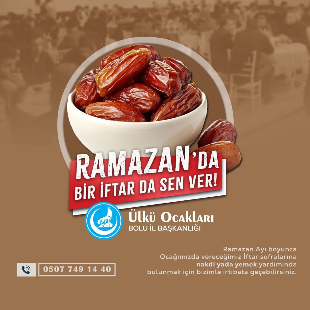 Cihan Başkan yaptığı açıklamada "Ülkü ocakları Bolu İl Başkanlığı olarak her yıl ramazan ayında olduğu gibi bu yılda ihtiyaç sahibi vatandaşlarımız için koli kampanyamız ve öğrenci kardeşlerimiz içinde ülkü ocakları bünyemizde iftar ve sahur programları düzenliyoruz.