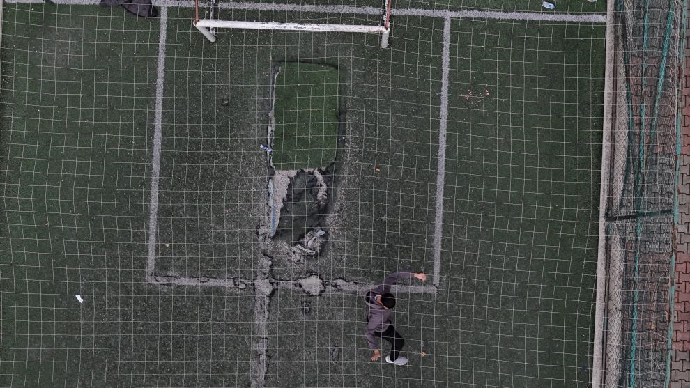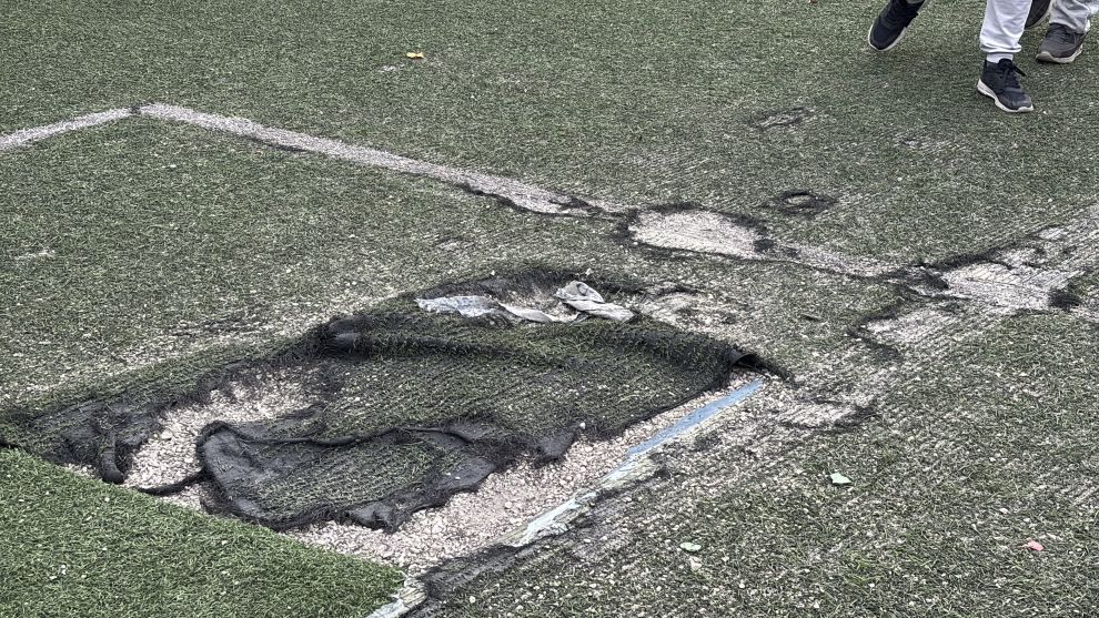 Borazanlar Mahallesi’nde 404 Sokak ile Bozkurt Sokak’ın birleşiminde bulunan park içindeki halı saha, sorumsuz vatandaşlar tarafından tahrip edildi. Kısa süre önce belediye ekipleri tarafından yapılan yama çalışmasına rağmen saha yeniden bozuldu. Çocukların futbol oynadığı alan, zeminde oluşan çukurlar nedeniyle adeta kullanılamaz hale geldi. Mahalle sakinleri, çocukların oyun alanının bu duruma gelmesine tepki gösterdi.