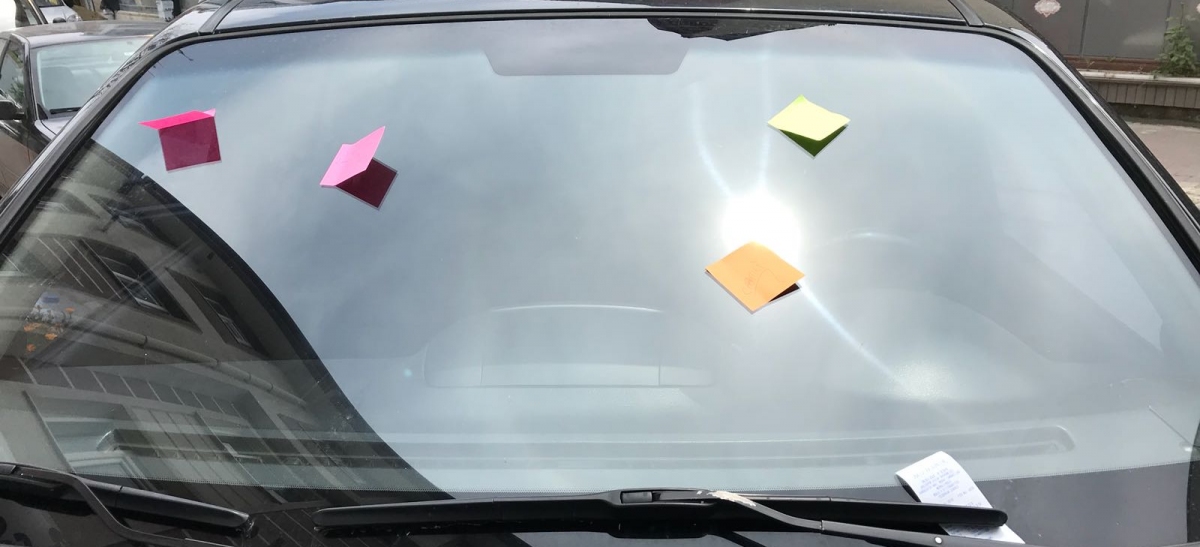 Tabaklar Mahallesi’ndeki ara sokakta bir işyerinin önünde kaldırıma park edilen cipin sürücüsü tepki çekti. Kimliği belirsiz kişi ya da kişiler, gece aracını kaldırıma bırakıp giden sürücüye tepkilerini küçük not kağıtlarına yazdıkları ifadelerle gösterdi. Aracın camlarına yapıştırılan, ‘Burası bizim kendine başka yer bul. Mal sahibine çeker, ‘Burası insanlara özel’, gibi yazıların bulunduğu çok sayıda küçük not kağıdı dikkat çekti.