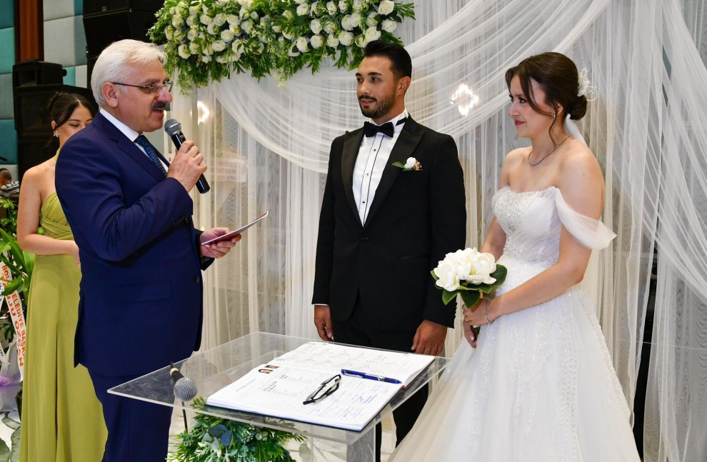 Genç çiftin nikahını Bolu Belediye Başkanı Tanju Özcan kıyarken, nikah şahitliğini Bolu Valisi Erkan Kılıç, MHP Bolu Milletvekili İsmail Akgül, CHP Bolu Milletvekili Türker Ateş, Zonguldak Ticaret ve Sanayi Odası (TSO) Yönetim Kurulu Başkanı Metin Demir, Kastamonu Ticaret Borsası Yönetim Kurulu Başkanı Serdar İzbeli, Bolu TSO Meclis Başkanı Aydoğan Tekin, Bolu TSO Yönetim Kurulu Başkan Yardımcısı Hakkı Fidan, Bolu TSO Yönetim Kurulu üyesi Cumhur Özçelik, Belediye Meclis Üyesi Nurettin Ulutürk ve Yakup Coşkun yaptı.
