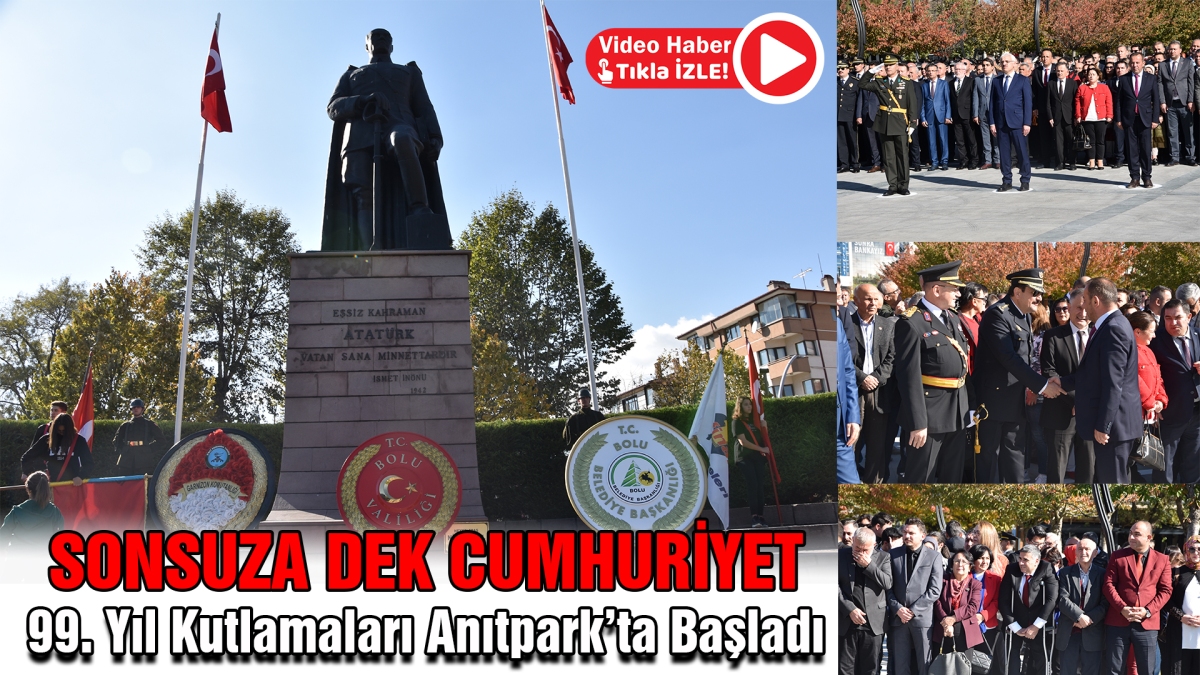 Bolu Valiliği tarafından 29 Ekim Cumhuriyet Bayramı’nın 99’uncu yıldönümü kutlama programı Anıt Park’ta düzenlenen törenle başladı. Düzenlenen törende Bolu Valisi Erkan Kılıç, Bolu Garnizon Komutan Vekili Merdin Kışkan ve Bolu Belediye Başkanı Tanju Özcan Atatürk Anıtı’na çelenk bıraktı. Tören, çelenk sunumunun ardından saygı duruşu ve İstiklal Marşı’nın okunmasıyla sona erdi.