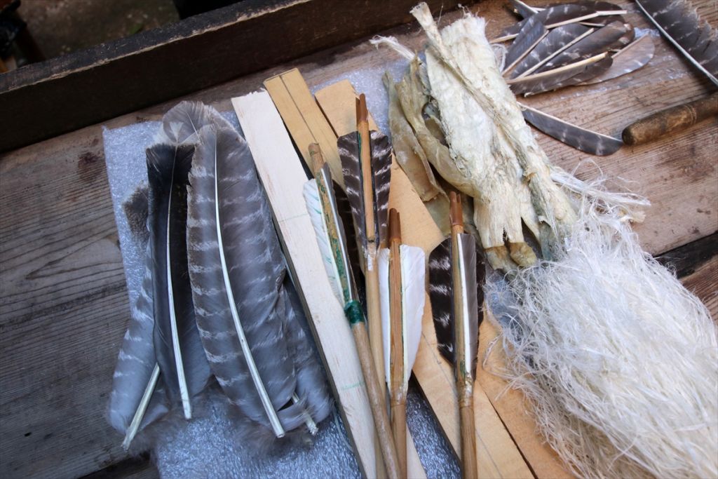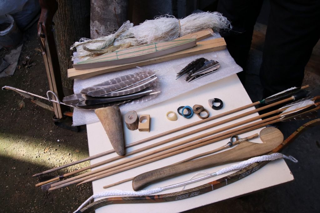 Zamanla oklarının yetmemesi üzerine evinin odunluğunda malzeme üretmeye başladığını anlatan Başaran, "Odunlukta kendimce ok, zihgir, Osmanlı'da zemberek ismi verilen arbalet ve keçi derisinden davul yapıyorum. Akçaağacından da Osmanlı yayı yapmaya çalışıyorum. Ama bu çok zor ve uzun zaman isteyen bir iş." diye konuştu.