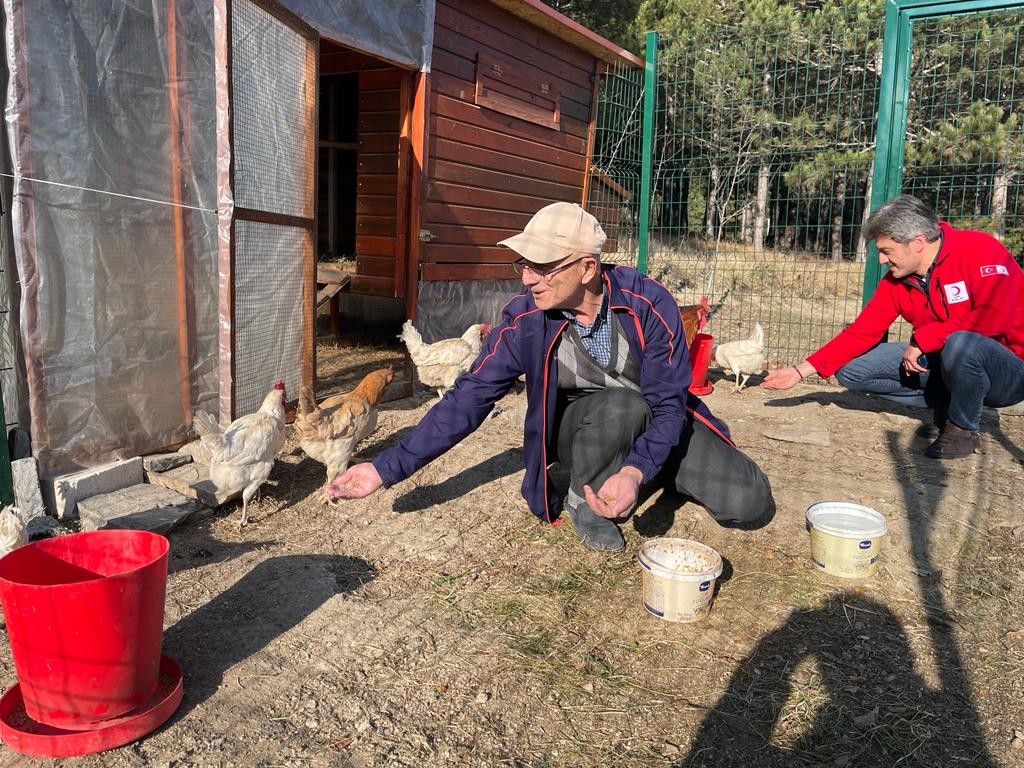 Bolu Kızılay Şube Başkanı Muhsin Kınacı ve kızılay yöneticileri huzurevinde kalan yaşlılarla bir araya gelerek kümesteki tavukları birlikte beslediler. Huzurevinde kalan yaşlı vatandaşlarda bahçelerinde bulunan tavuklarla ilgilenerek stres atıyorlar.